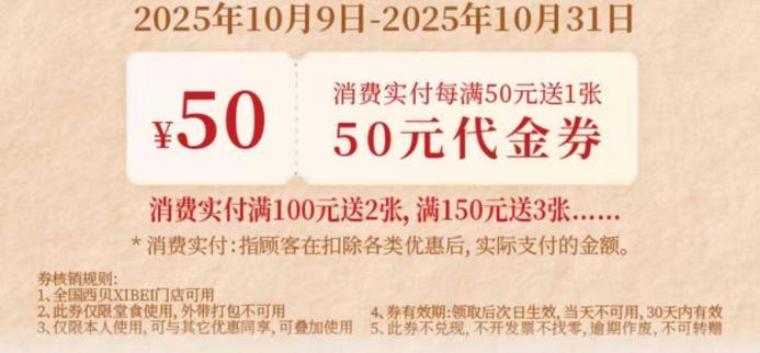 从9月24日开始,西贝开始尝试各种促销活动。首先是在线下门店发起“西贝请您吃饭”活动,到店消费即可领取无门槛的100元代金券;10月,西贝不仅新增到店“消费满50元送50元代金券”的活动,还对全国门店40道菜品大幅降价。其中被舆论广泛提及的草原嫩烤羊排和葱香烤鱼,分别从119元降至99元,89元降至79元。